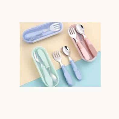 Couverts plaqués argent en acier inoxydable au design élégant avec poignée en plastique coloré couverts avec boîte pour enfants et enfants