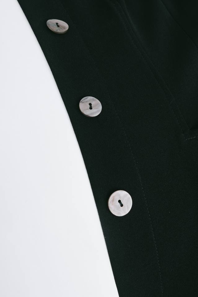 More details:Oversized collar, box pleats, four patch pockets button with flaps.