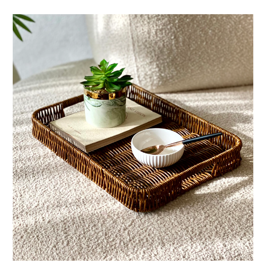 Plateau de service design élégant en rotin Panier Design Tasse à thé Plateau en rotin Plateau en rotin design moderne