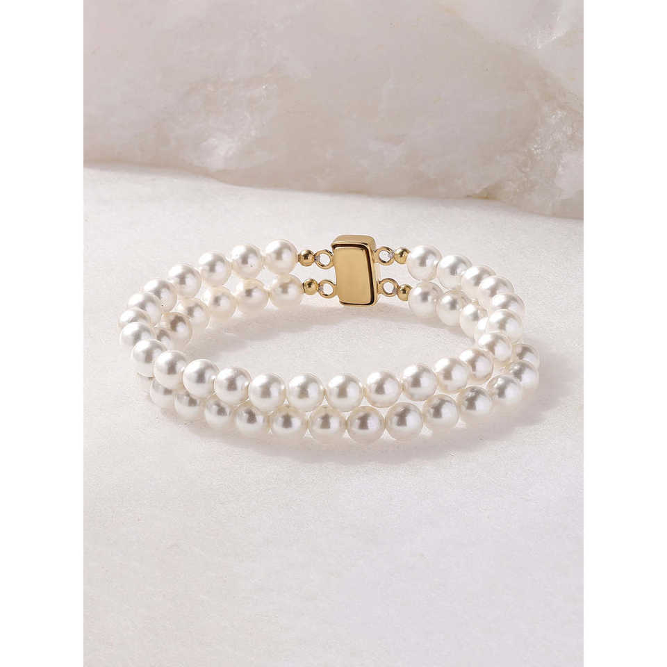 Elegant Double Row Pearl Bracelet with Clasp Elegant Bangles for Women