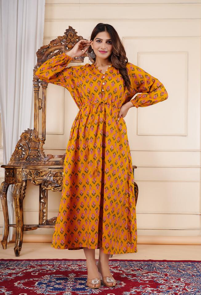 Nom du produit:Robe longue indienne en coton, style caftan, avec bordure en soie Zari