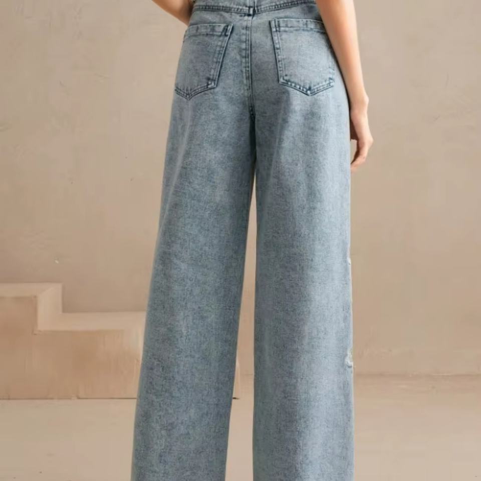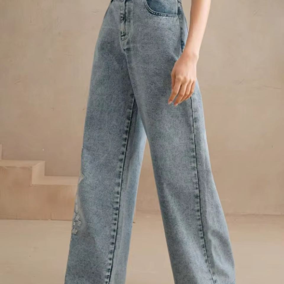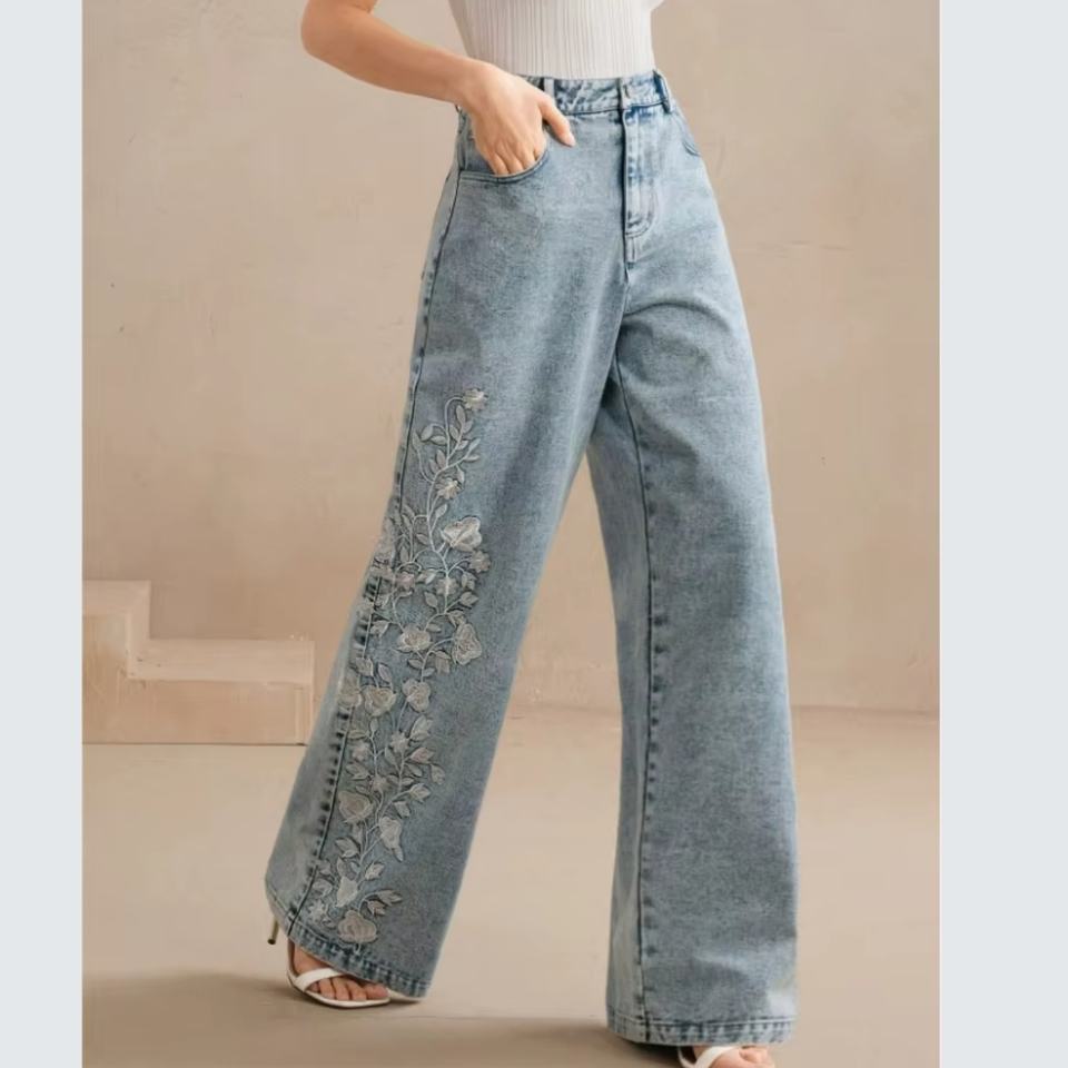 Jeans amples d'été pour femmes, élégants, à motif floral brodé, respirants, à jambes larges, en denim épissé