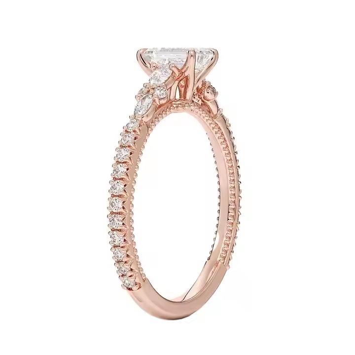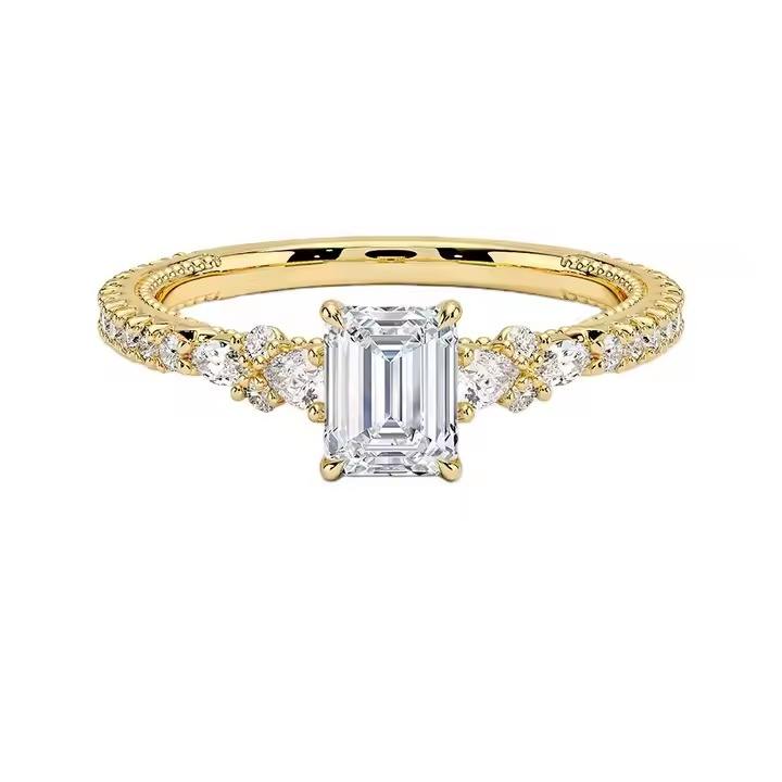 Elegant Emerald Cut Moissanite Wedding Ring for Women Gra Certified 10k Gold Engagement Rings