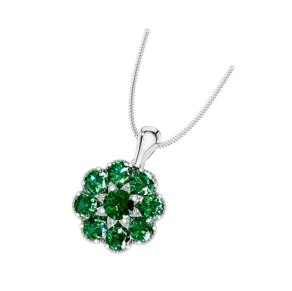 Style:Floral Emerald Pendant Studded with Natural Diamonds