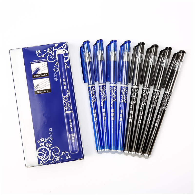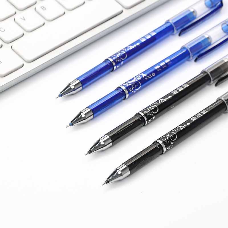 Stylos à encre gel effaçables élégants avec pointe aiguille de 0,5 mm, 2 couleurs (noir/bleu) et motif décoratif pour étudiants