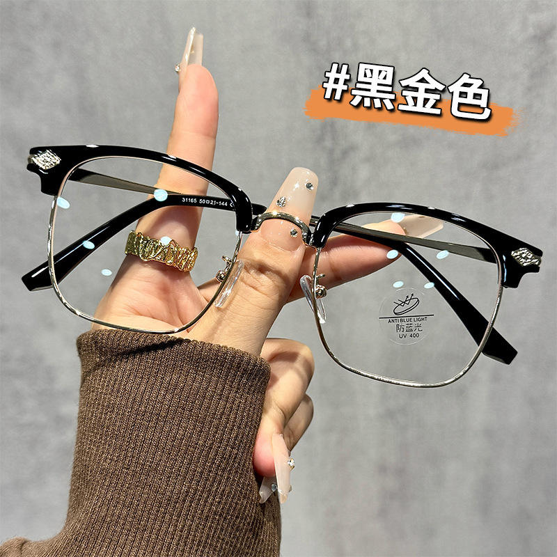 Lunettes optiques élégantes à demi-monture en métal TR, protection anti-lumière bleue pour femmes, 31165