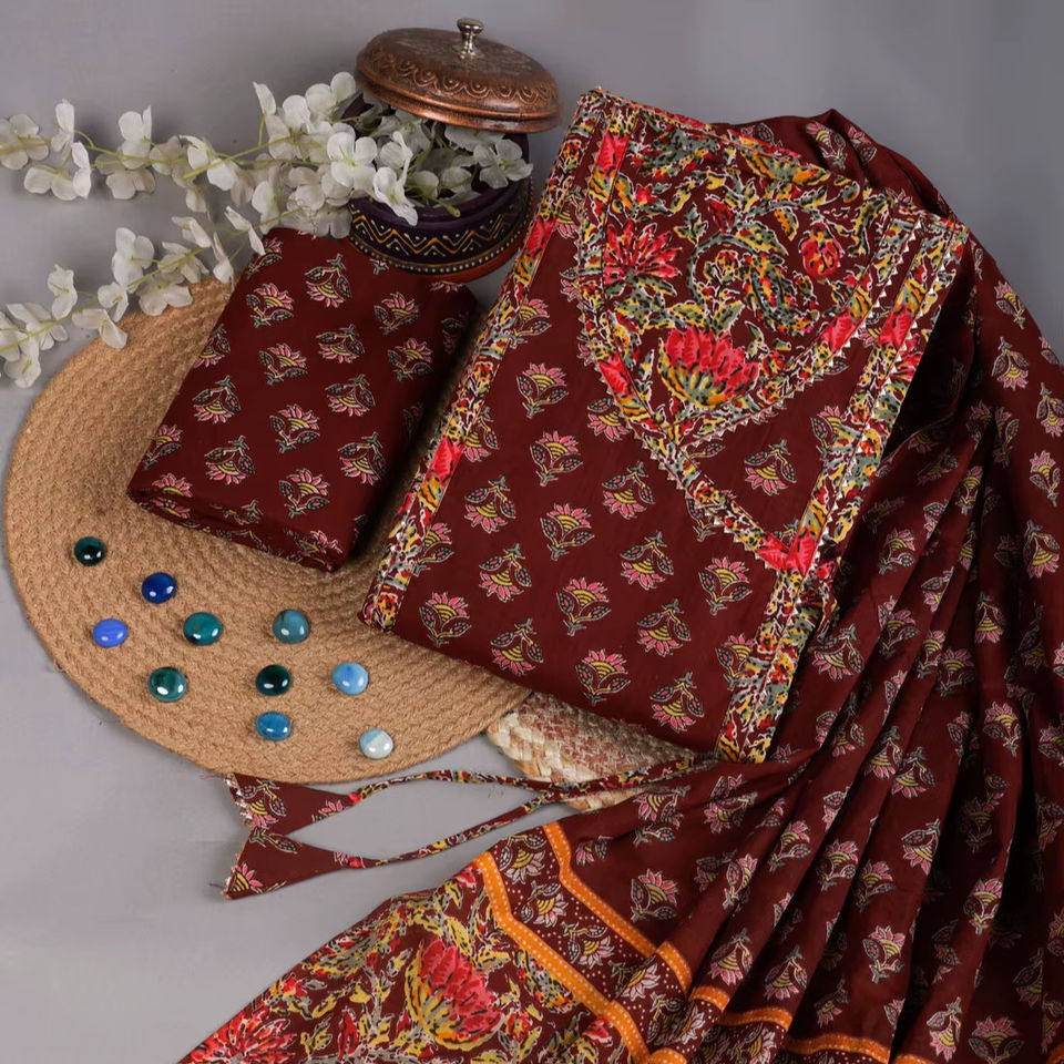 Elegant Festival Wear Cotton Salwar Kameez Floral Printed Gota Work Angrakha Style Cotton Unstitched Dress Material for Women