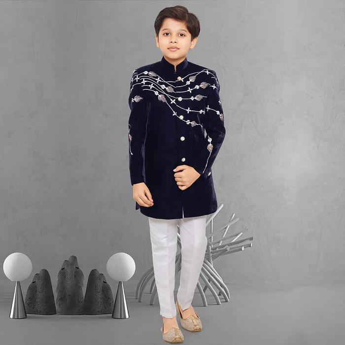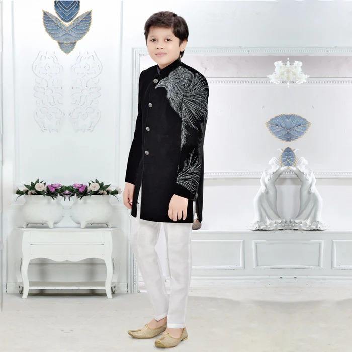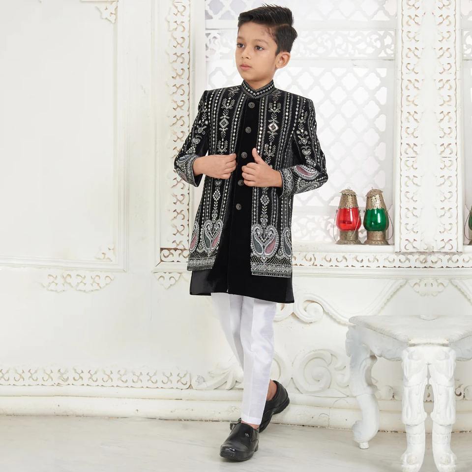 Elegant Festive Kids Boys Sherwani Traditional Wedding Party Outfit for Children with Premium Silk Pakistani Indian Style