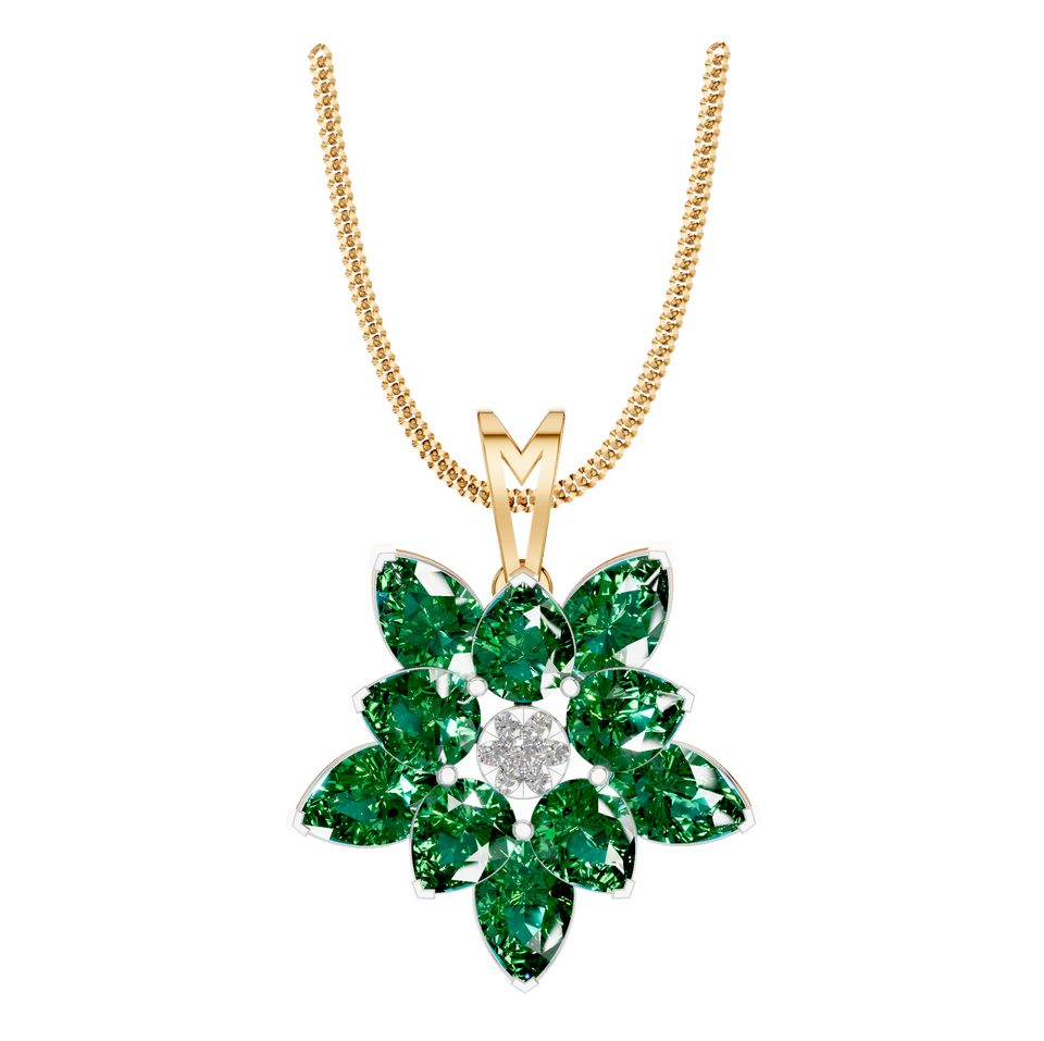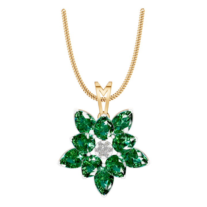 Style:Floral Emerald Pendant with Studded with Natural Diamonds