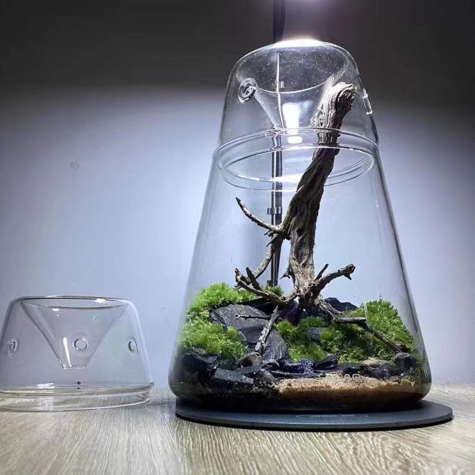 Terrarium en verre borosilicate géométrique élégant, fait main, écologique, style Japandi, vase de table avec couvercle amovible
