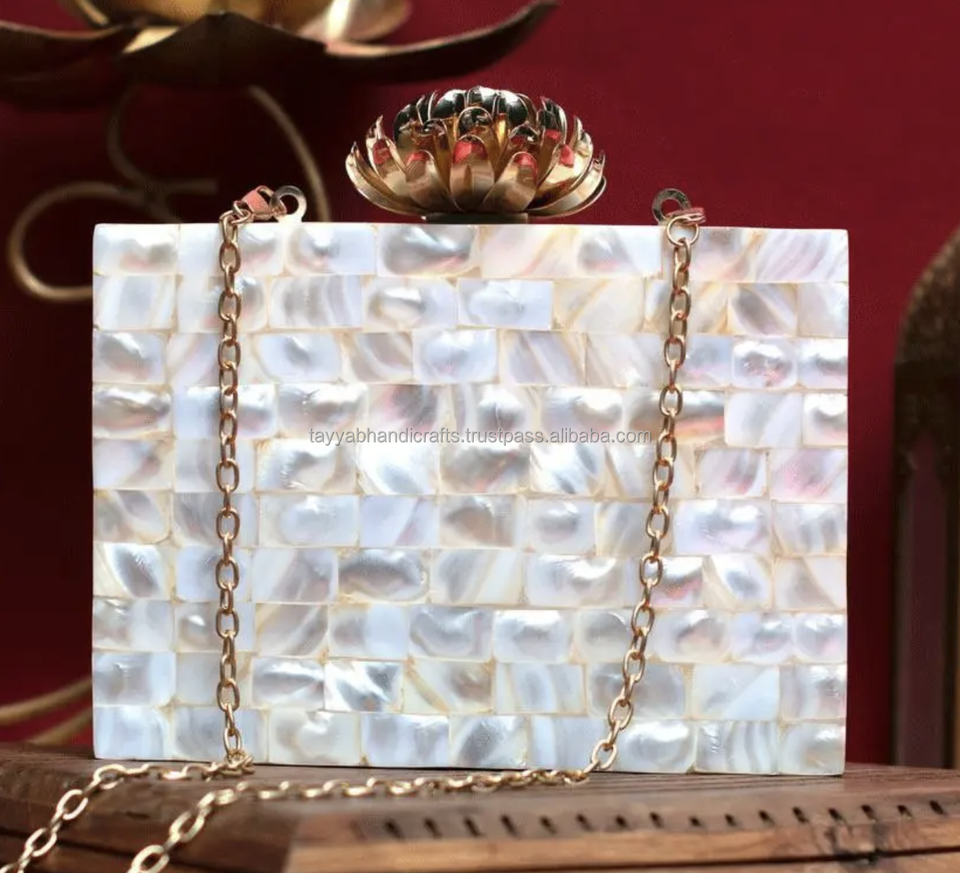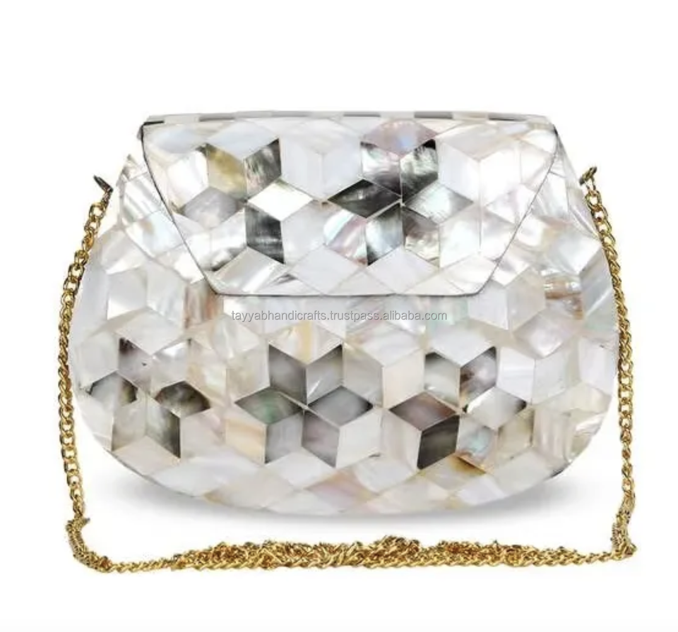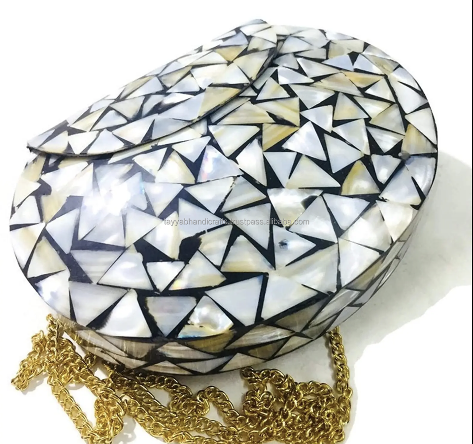 Elegant Gold Chain Iridescent Mosaic Metal Clutch Purse Fashion Open Unique Bridal Accessory for Special Occasions