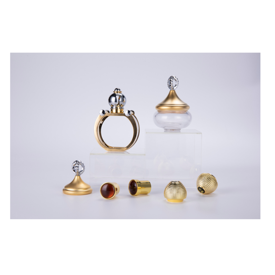 Elegant Gold Crowned Metal Zinc-Alloy Perfume Bottle with Pump Sprayer and Customizable Bottle Caps & Closures