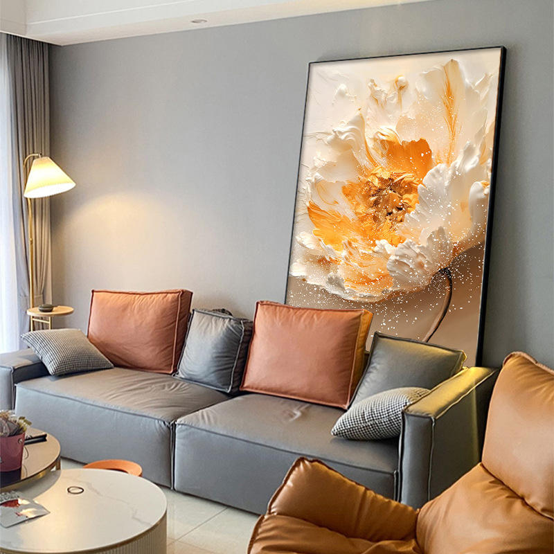 Impression abstraite de fleurs sur toile encadrée dorée élégante, décoration murale moderne simple pour la maison, le bureau, grand format, à suspendre, fleurs au sol