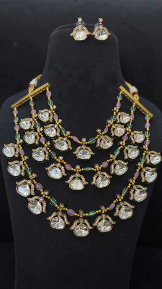 Elegant Gold Plated Kundan Necklace Set Rope Chain Pearl Main Stone Alloy Material Stylish Traditional Design Brides Weddings