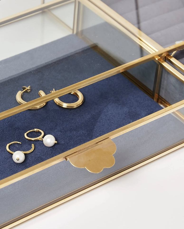 Mini tiroirs élégants à bordure dorée Boîte à bijoux décorative moderne pour la maison avec miroir de table pour le rangement des accessoires d'habillage des femmes
