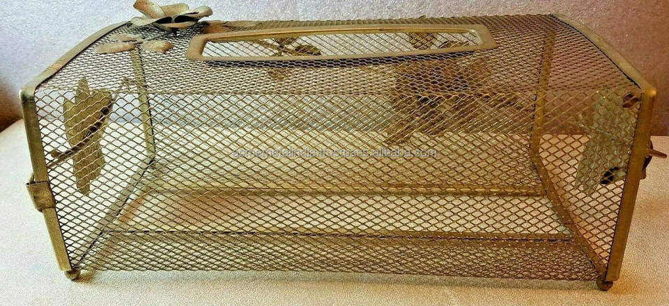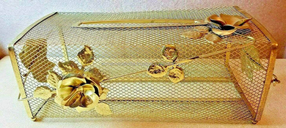 Elegant Golden Tissue Paper Holder in Metal Iron Mesh Perfect for Kitchenware and Restaurant Decor and Stylish Organizations