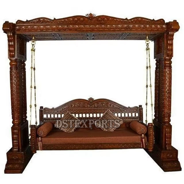 Base d'éléphant élégante sculptée à la main balançoire traditionnelle en bois de teck durable Jhula artisanat indien Jhoola DST exportations fabricant