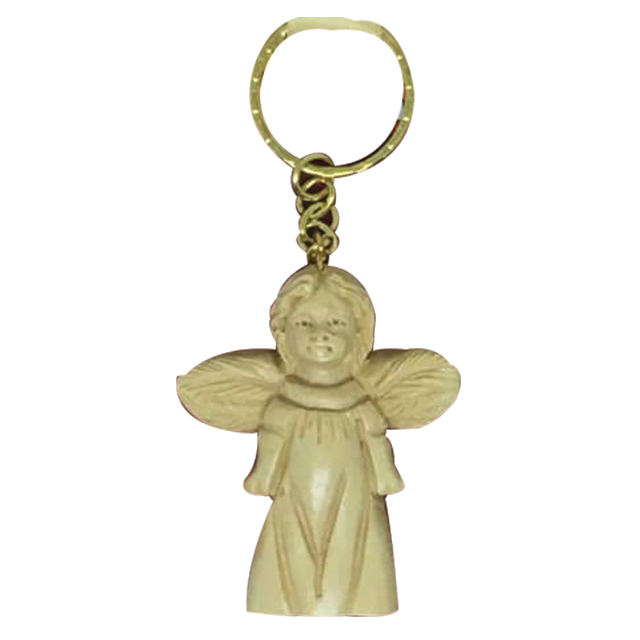 Elegant Hand-Carved Olive Wood Christian Angel Christmas Key Chain Decorations