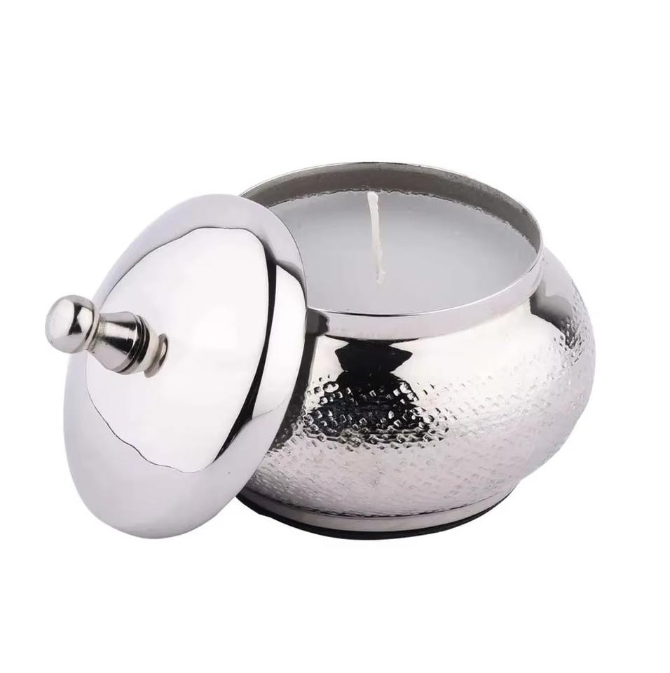 Pot à bougie en métal élégant, artisanal, écologique, durable, design moderne, couleur argent, tailles personnalisées pour Noël, Pâques