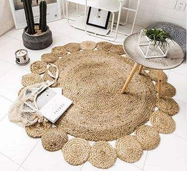 Tapis élégants en jacinthe d'eau fabriqués à la main pour des cuisines fonctionnelles et des salons spacieux durables et naturels