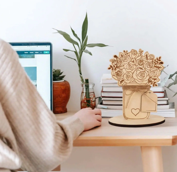 wood:wooden flower vase