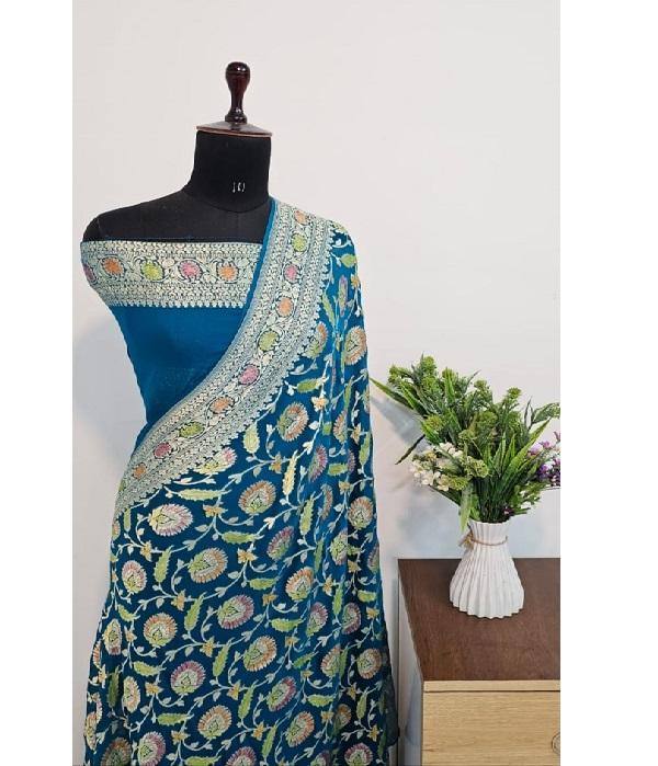 Elegant Handloom Pure Banarasi Khaddi Georgette Saree With Fine Fabric And Zari Work For Festive Wedding And Ethnic Wear