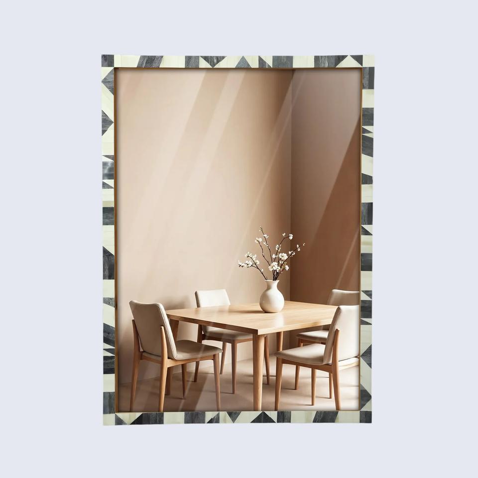 Miroir mural élégant en MDF avec incrustations en os faites à la main, cadre géométrique Art Déco pour chambre, couloir et hall d'entrée, cadeau Diwali