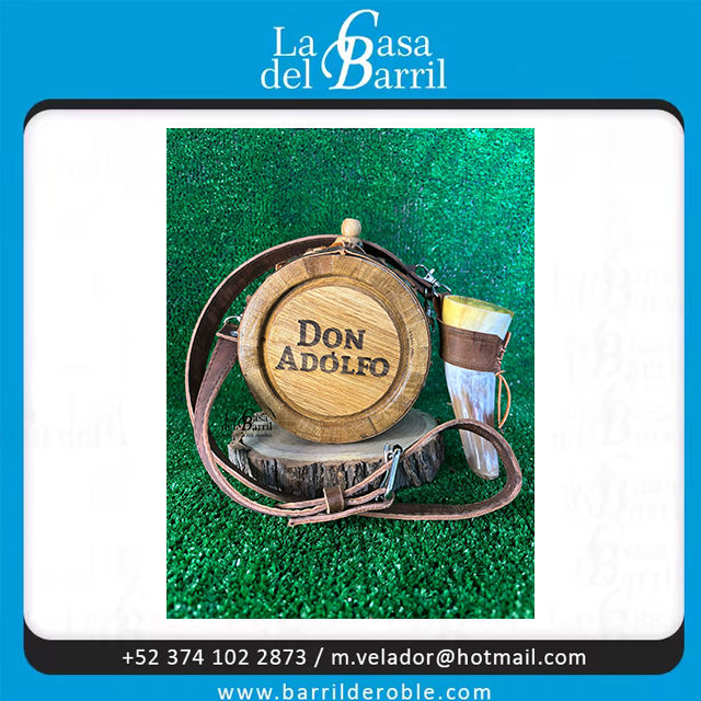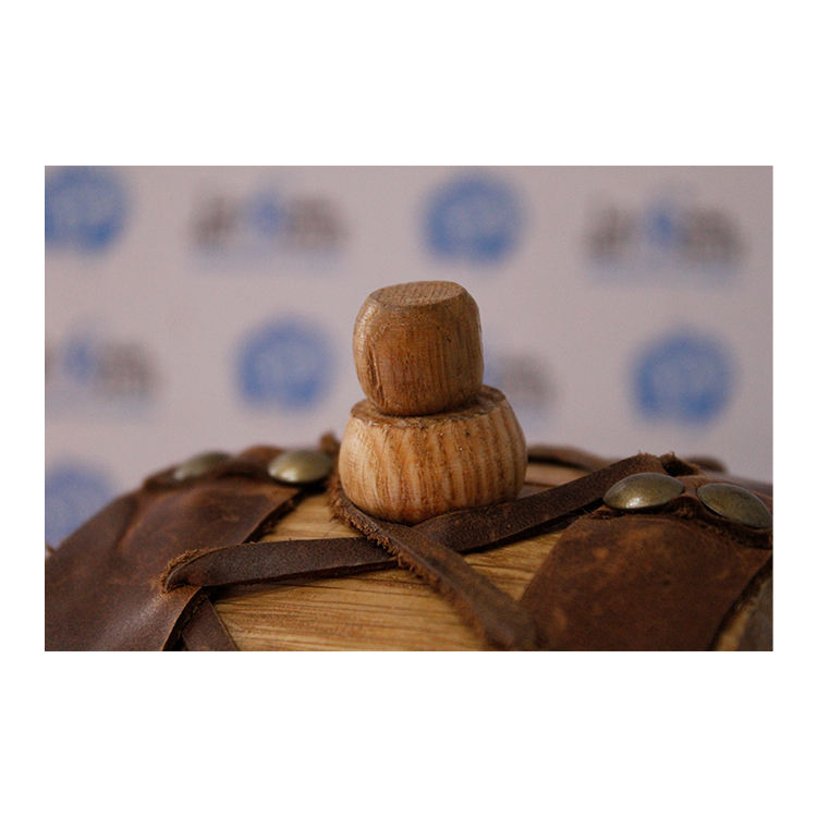 Elegant Handmade Brown Oak Wooden Amphora Wine Beer Barrel Durable Leather Lining 1L Capacity for Storing Serving Beverages La