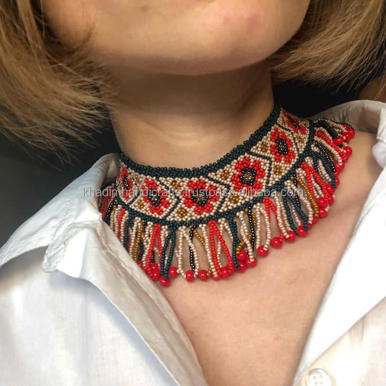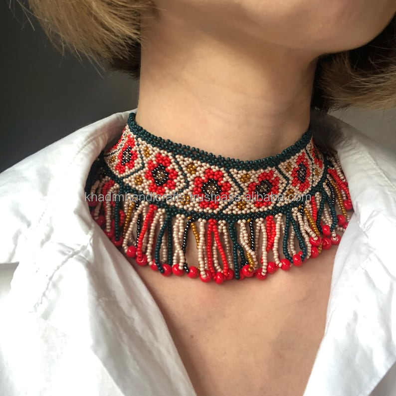 Material:Glass bead embroidery necklace