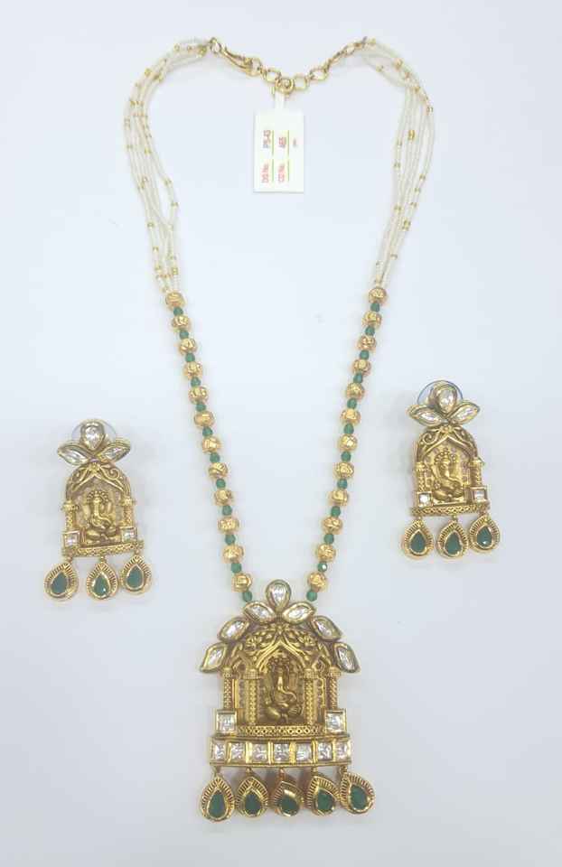 Elegant Handmade Kundan Pendant Necklace with Green Stones and Earrings Jewelry for Women Ideal for Weddings and Grand Functions