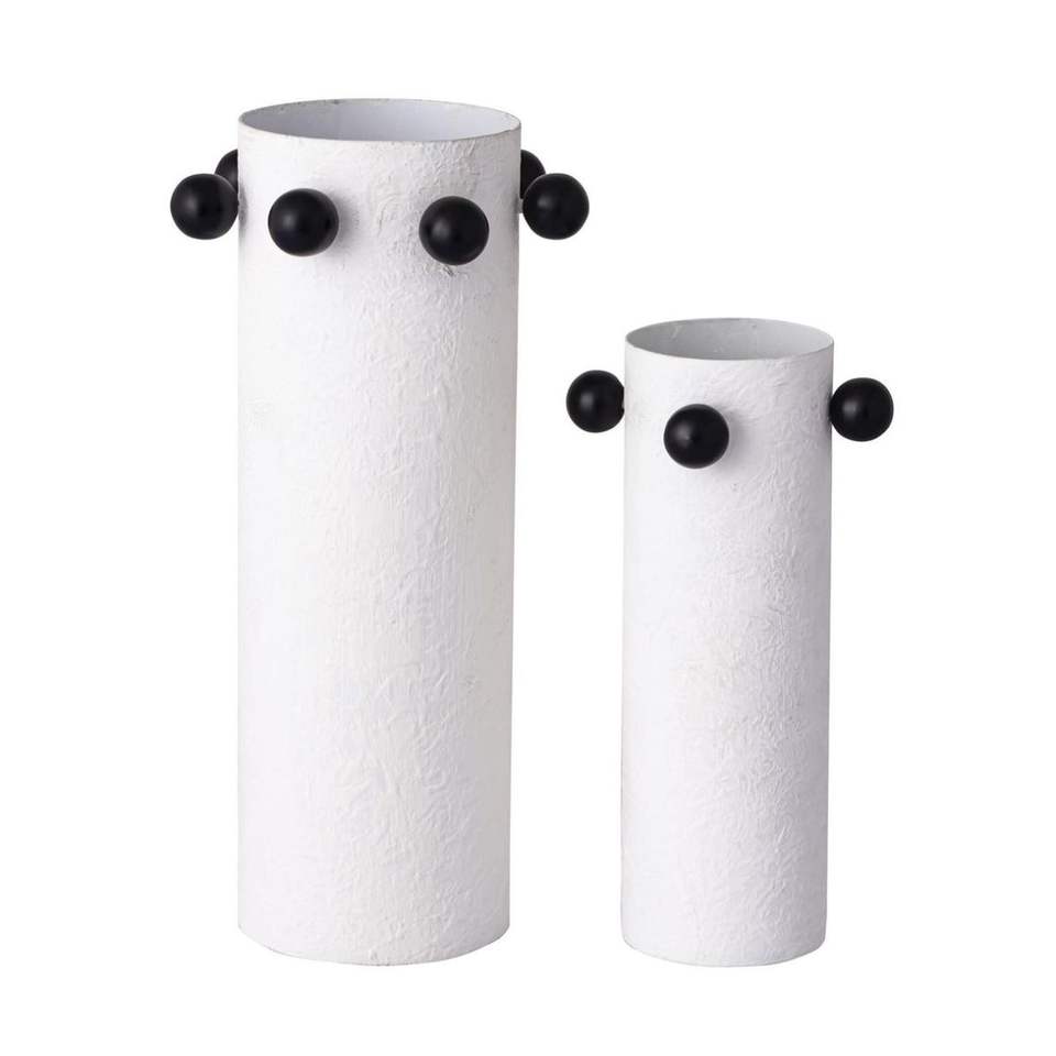 Ensemble de vases à fleurs en métal élégants faits à la main, vase décoratif en fer texturé blanc avec des clous noirs pour la décoration du salon, du mariage et de l'hôtel