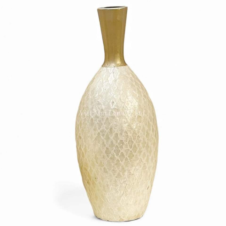 Elegant Handmade White Mother Of Pearl Vase Set Decorative Accent For Home And Boutique Hotel Decor