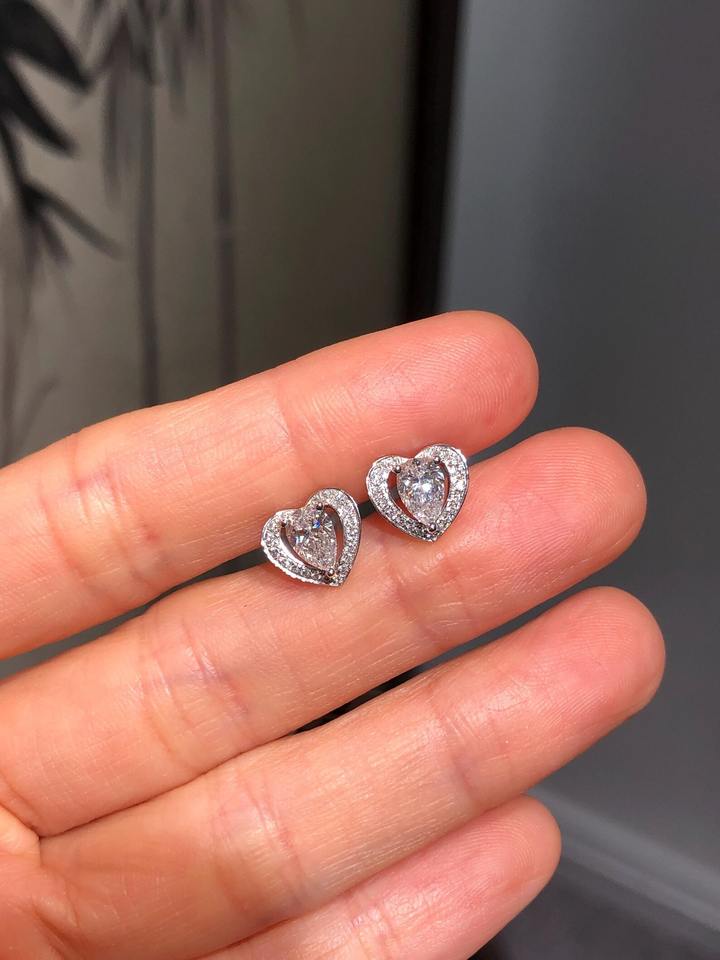 Élégantes boucles d'oreilles en forme de cœur avec diamants de laboratoire, or blanc 14 carats, accent de diamant poire, bijoux fins pour femmes