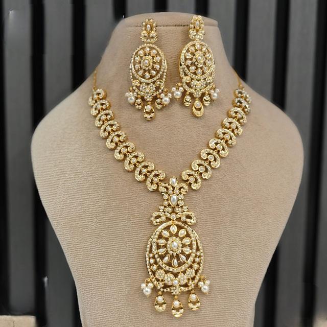 Elegant High Quality Gold Plated Jadau Necklace Set With Earrings For Wedding And Functions Wear Collection For Women And Girl