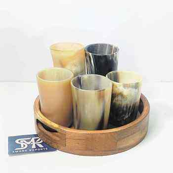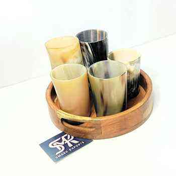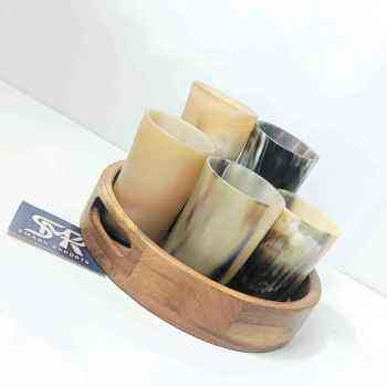 Production:wooden tray with horn mug