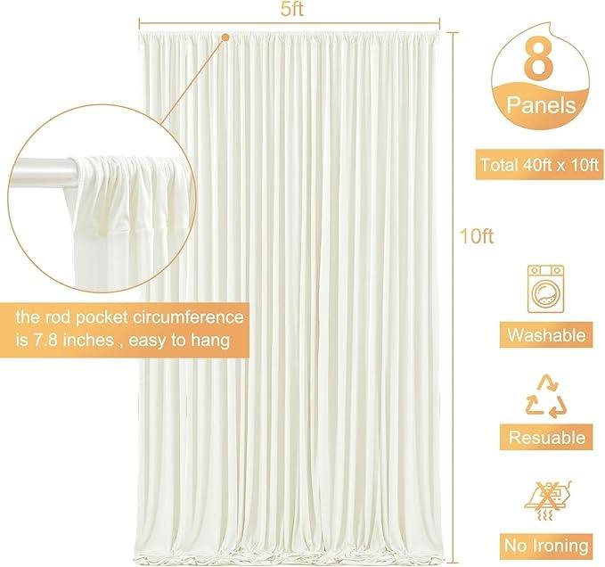Rideaux de fond élégants en ivoire sans plis pour mariages, fêtes, décors photo, baby showers et décorations