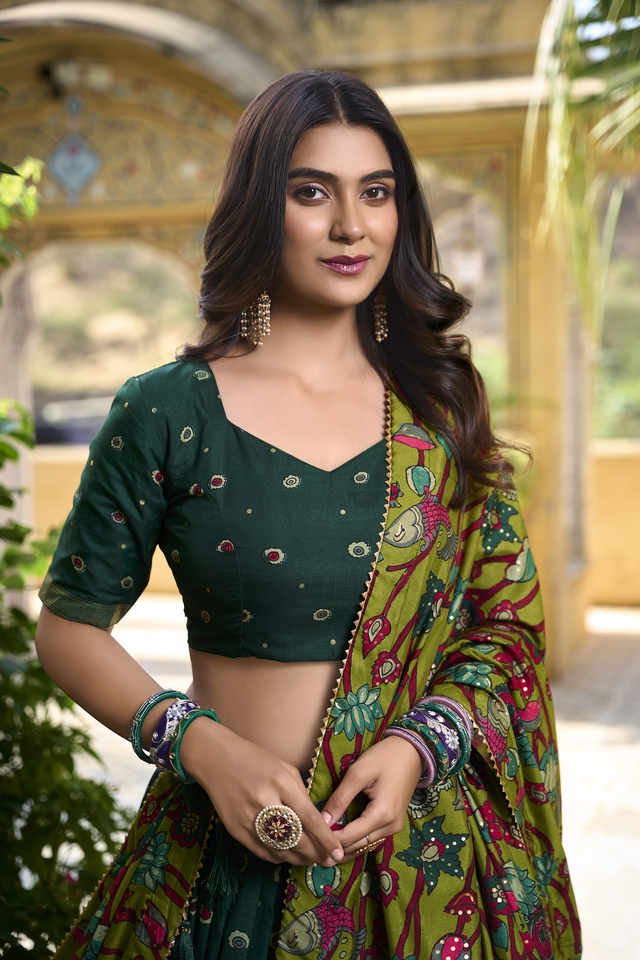 Lehenga Work:Kalamkari Print With Foil Work Border