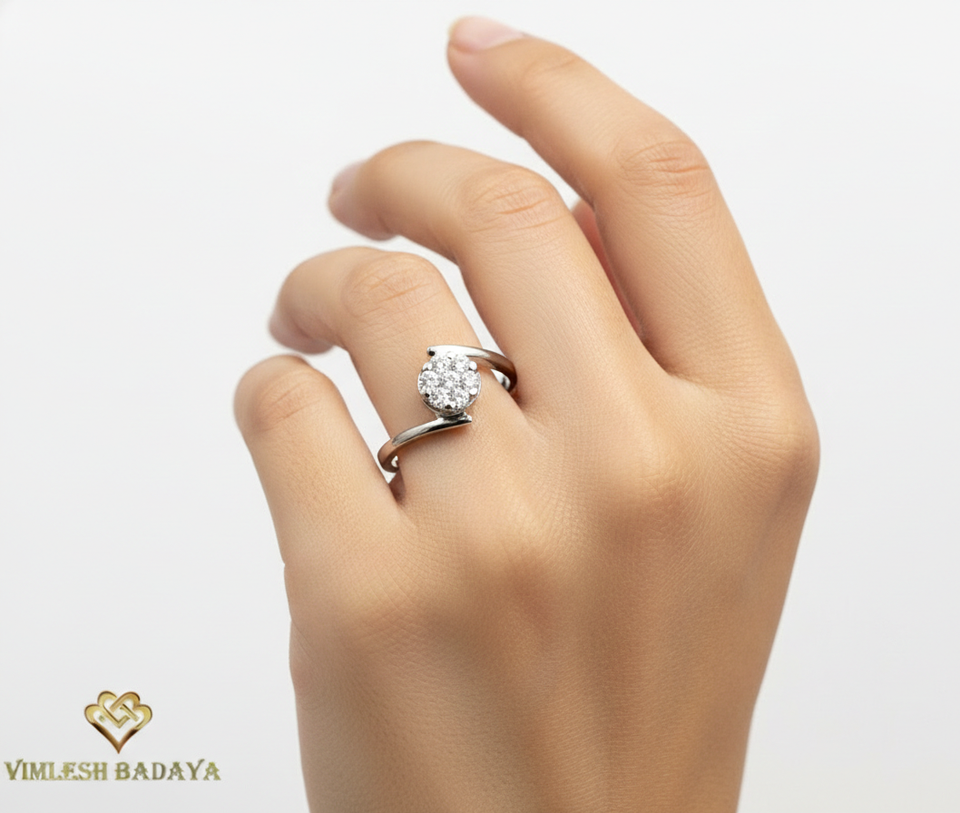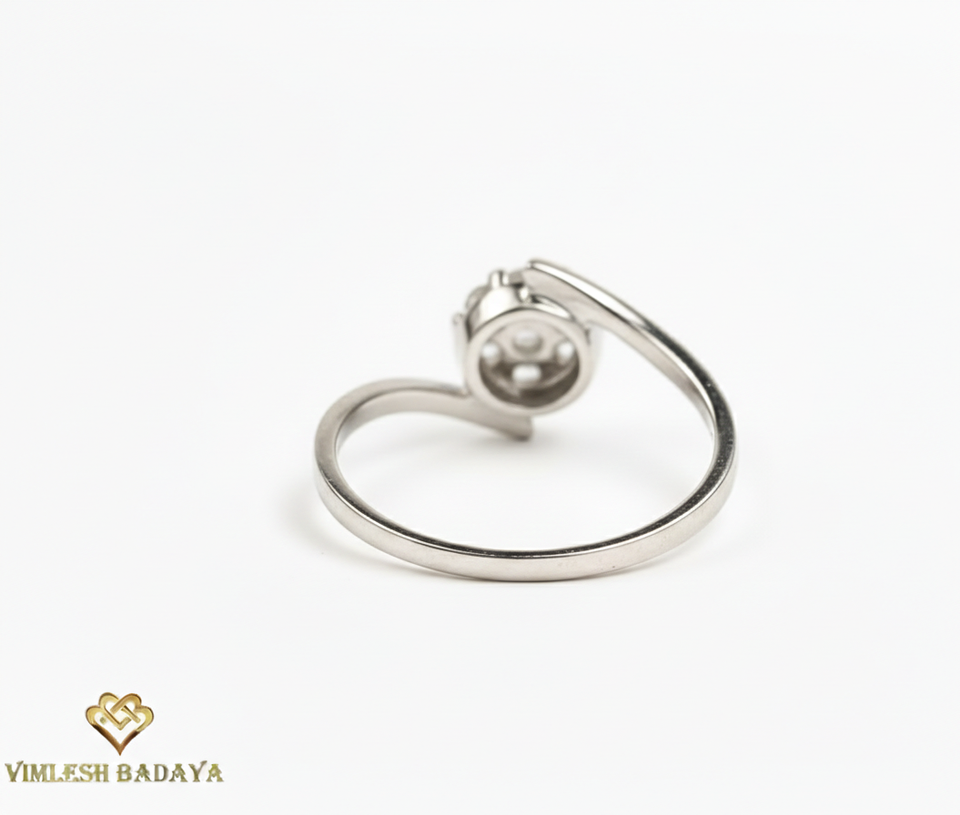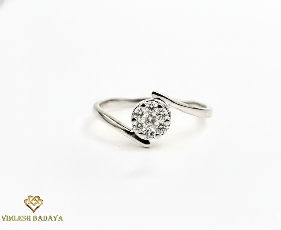 Élégante bague en or blanc massif 10K 14K avec diamant de laboratoire serti en illusion, bague bypass, cadeau d'anniversaire, bague à 7 pierres de diamant