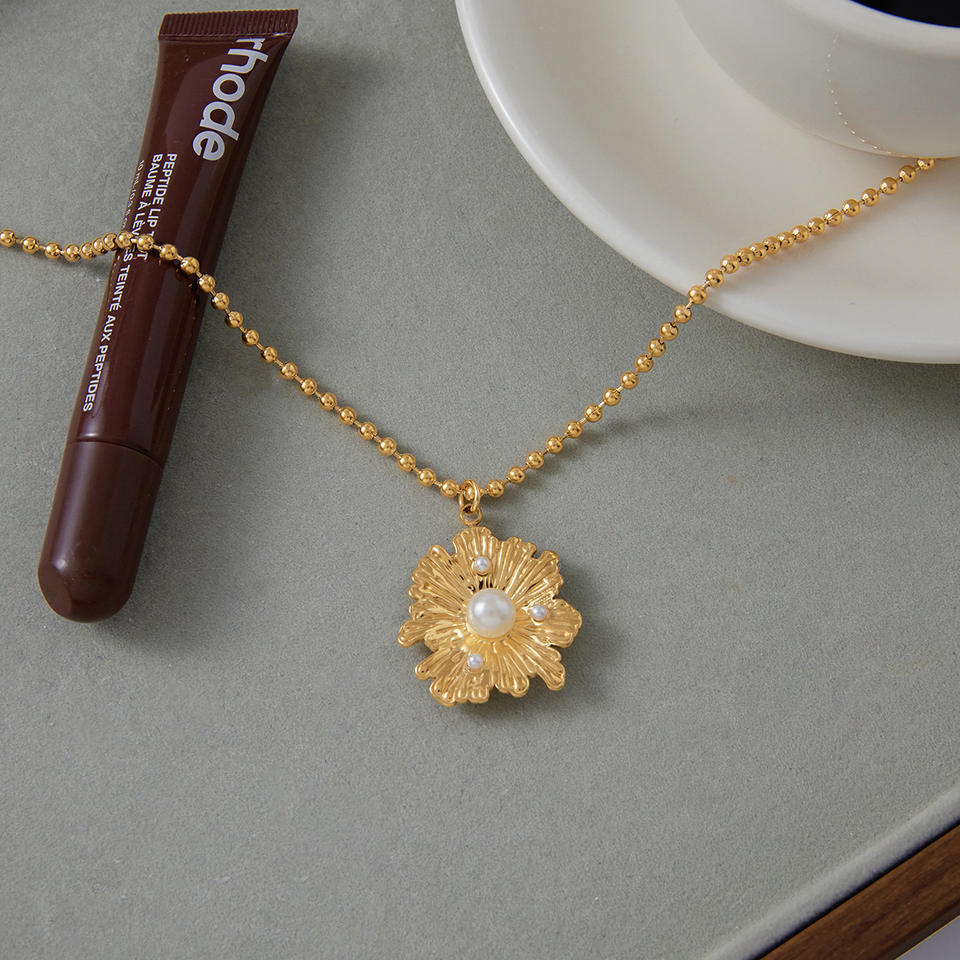 Elegant Ladies Necklace Fashion Jewelry Stainless Steel Pearl Flower Pendant Necklace for Women