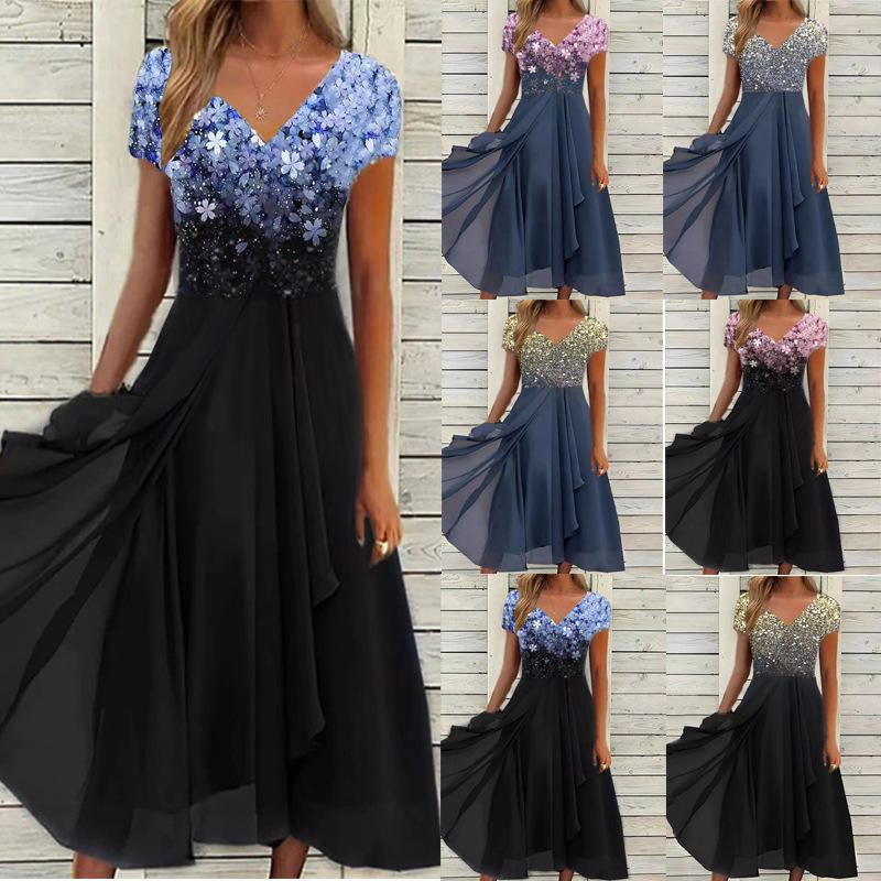 Robe élégante en mousseline de soie à imprimé léopard avec empiècements en dentelle et découpes, taille naturelle, style décontracté pour le printemps