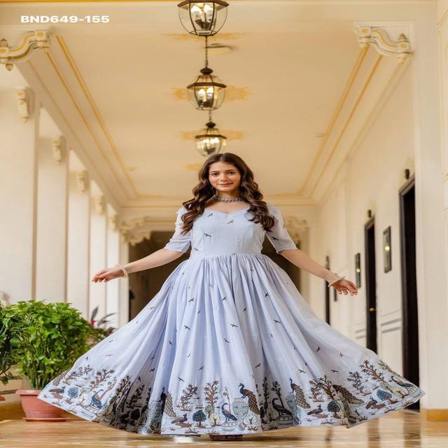Ensemble Robe et Dupatta en Chinon avec Broderie, Couleur Étonnante et Style Élégant, Fabricant de Mode Féminine Indienne, Exportateur