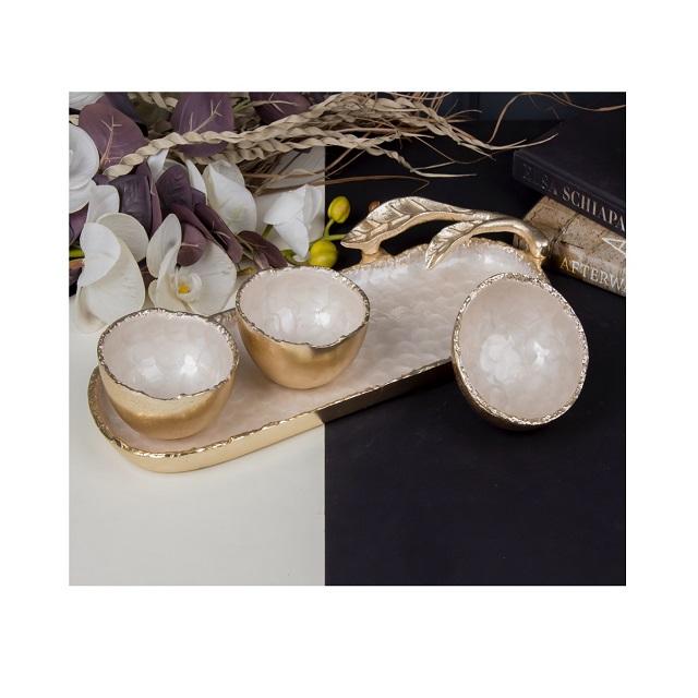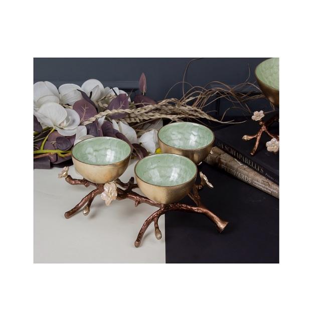 Bol de service en métal au design élégant avec branches de feuilles or et émail fini pour servir la salade bol de plat décoratif
