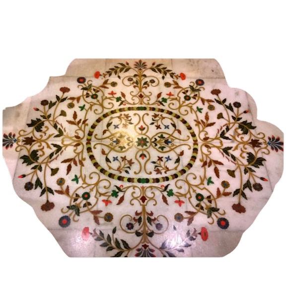 Revêtement de sol élégant en marbre incrusté, dalle de pierre naturelle, revêtement de sol décoratif | Dalle de marbre pour la décoration intérieure de la maison, exportateur Inde