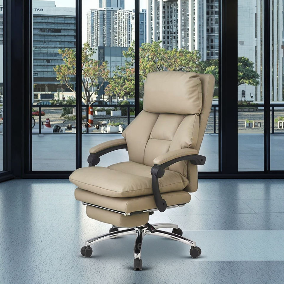 Elegant Luxury Executive Office Chair Comfortable High-Back Grey PU Leather Swivel Meeting Room Chair Aluminium Iron PA