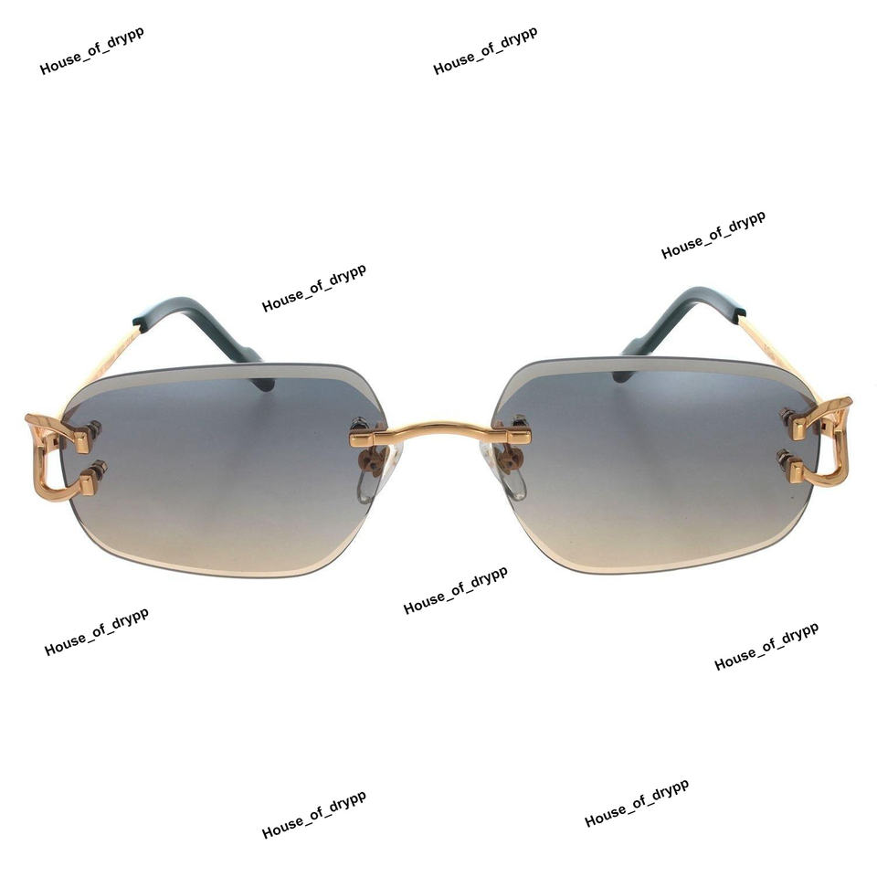 Lunettes de soleil élégantes et luxueuses sans monture avec des accents plaqués or et des verres géométriques stylés pour la mode moderne et la protection solaire