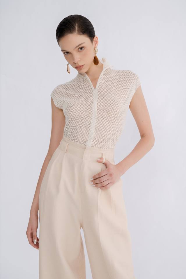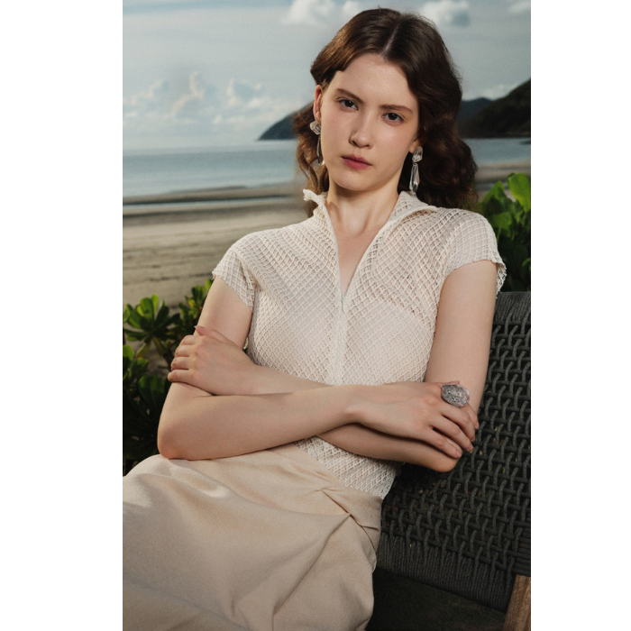 Elegant & Luxury Sleeveless Women's Knit Tops With Front Zipper in Stock Women's Clothes Susan Lace Top Relief Fabric Vietnam