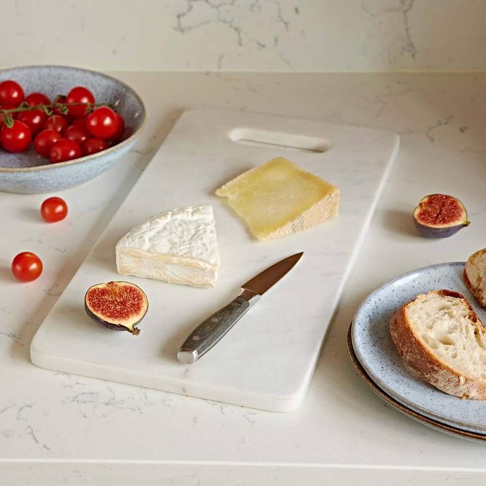 Planche à découper élégante en marbre avec surface lisse non poreuse idéale pour couper les légumes, les fruits, les viandes et le fromage en toute sécurité