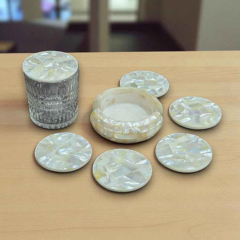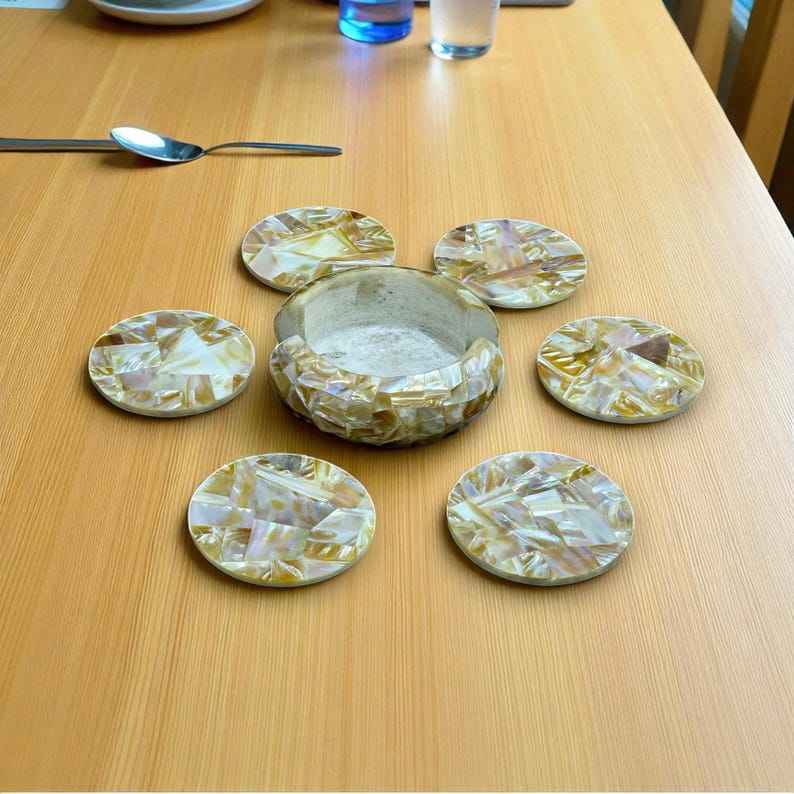 Sous-verres élégants en marbre incrusté, ensemble de sous-verres en pierre faits à la main, décoration de table de bureau, idée cadeau