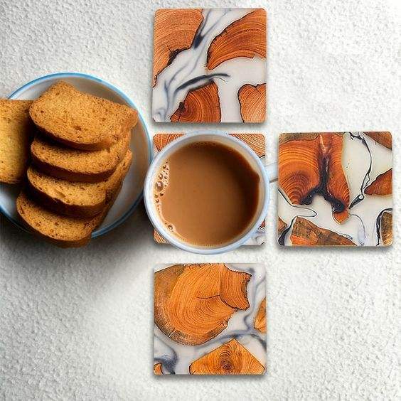 Elegant Marble and Wood Tea Coasters Set Premium Absorbent Coasters for Drinks Stylish Home Decor & Functional Table Protection