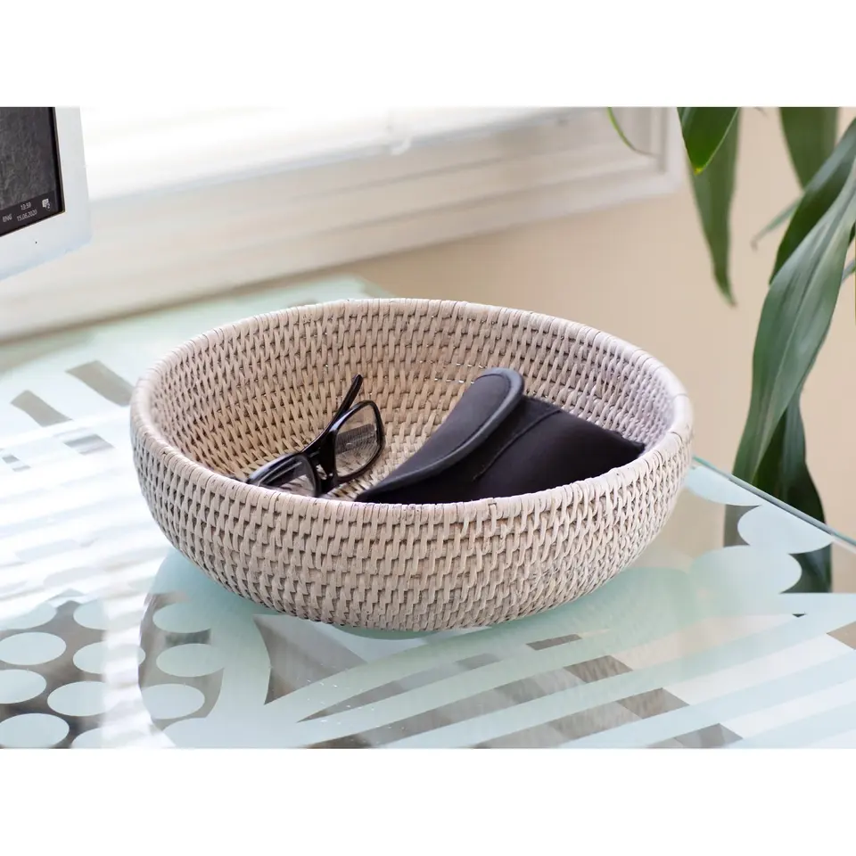 Elégant bol de service en rotin maillé fini naturel parfait pour les mariages, les événements et l'utilisation quotidienne de la cuisine à domicile Meilleurs prix